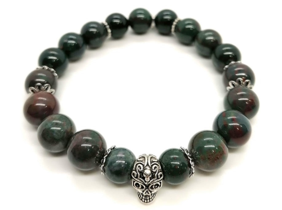 Le bracelet Héritage Juda est composé entièrement de perles de jaspe sanguin accompagnées d'une skull, de coupelles et de séparateurs en argent Sterling 925.