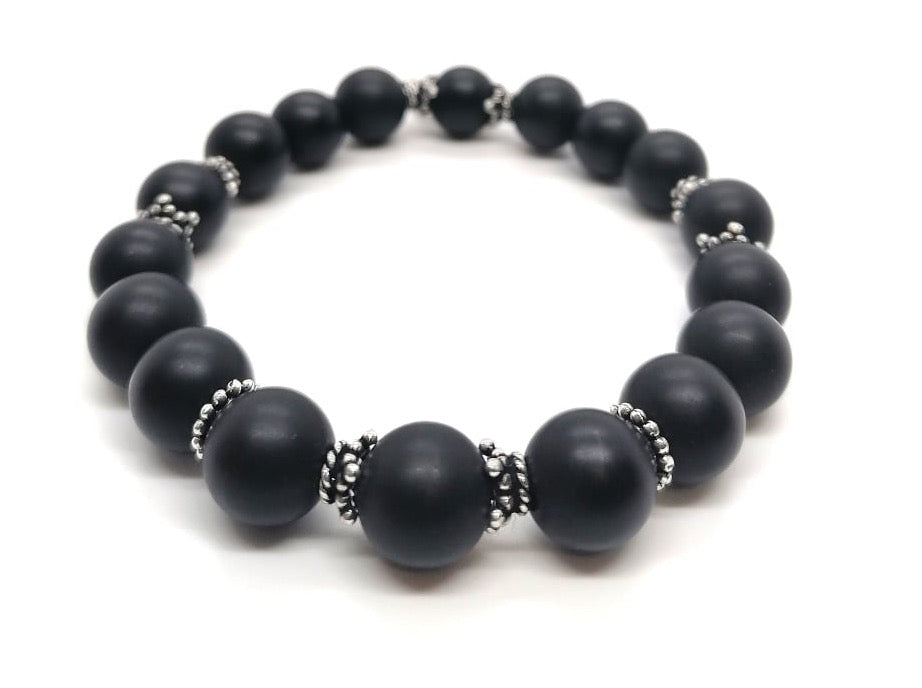 Le bracelet Héritage Apache est composé entièrement de perles d'onyx mat accompagnées de coupelles et de séparateurs en argent Sterling 925.