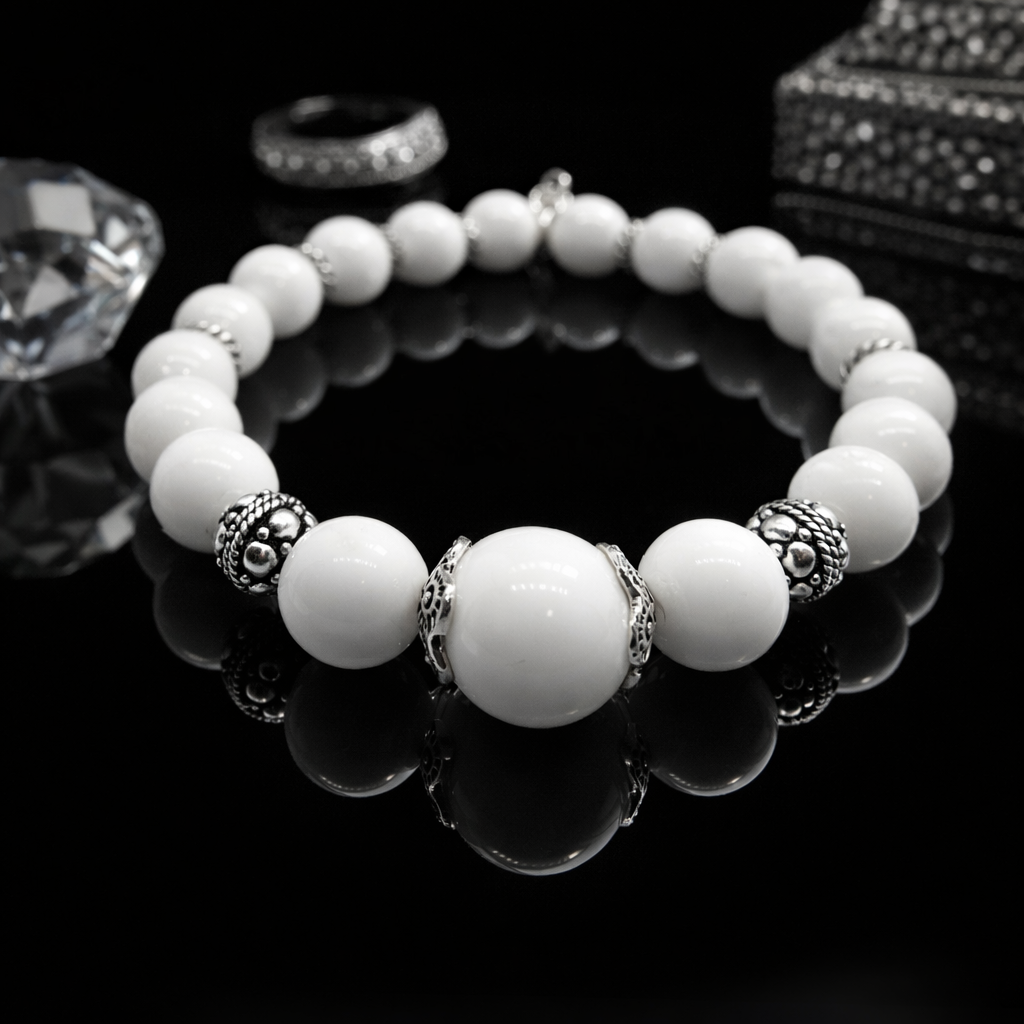 Le bracelet Héritage Freedom est composé entièrement de perles de bénitier avec deux petites perles de Bali,  accompagnées de coupelles et de séparateurs en argent Sterling 925.